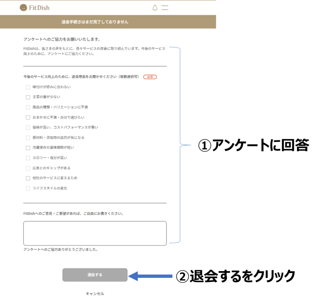FitDishを解約する方法を紹介します。5分程度で解約手続き終了です。