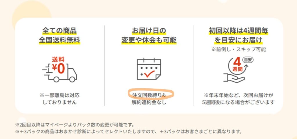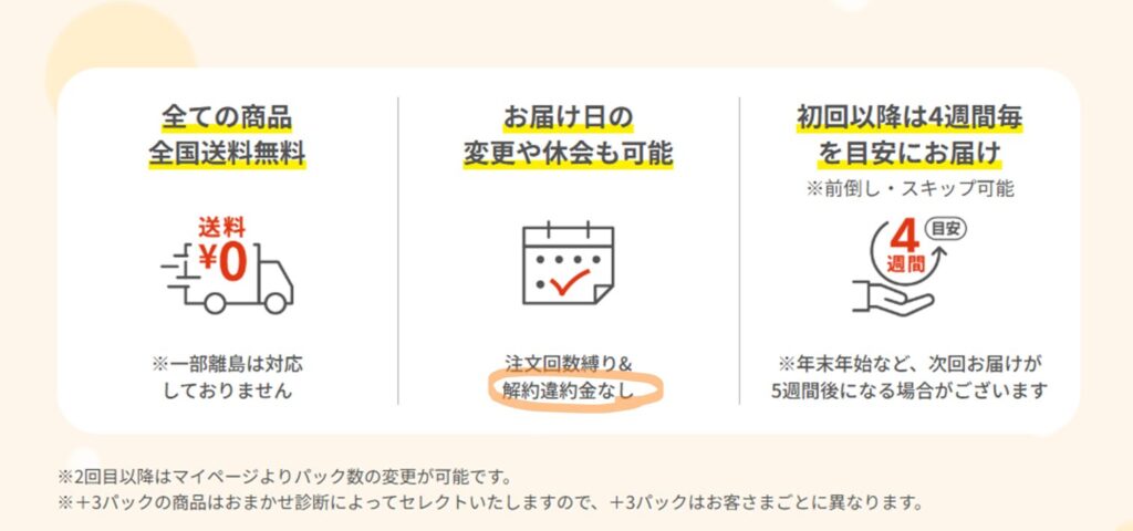 ④ 購入回数の縛りなし&解約違約金もなしで安心