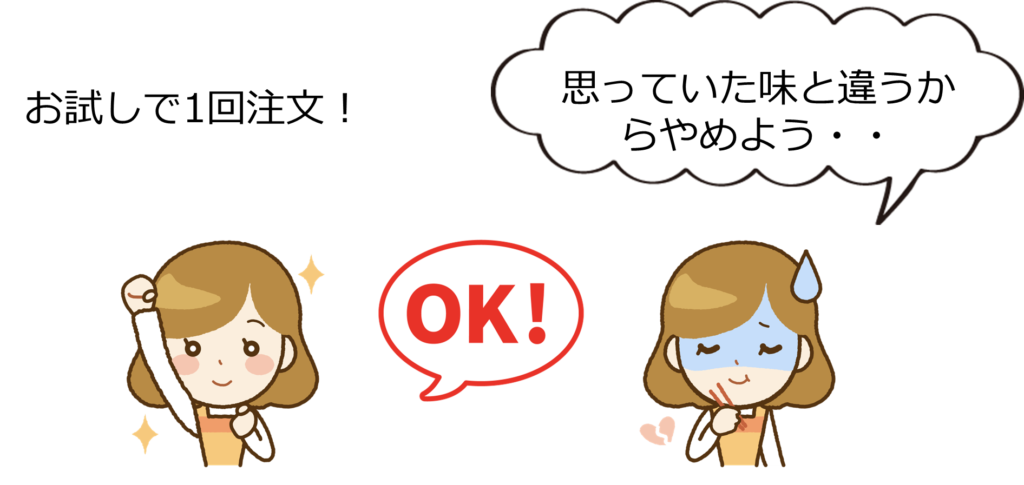 1回目の体験をもとに、2回目のおかずについて、調理法(煮物・焼き物・炒め物など)、料理ジャンル(和中洋)、食材(魚肉野菜)、などを変えたり、パック数や主菜副菜の比率を変更することがおすすめです。