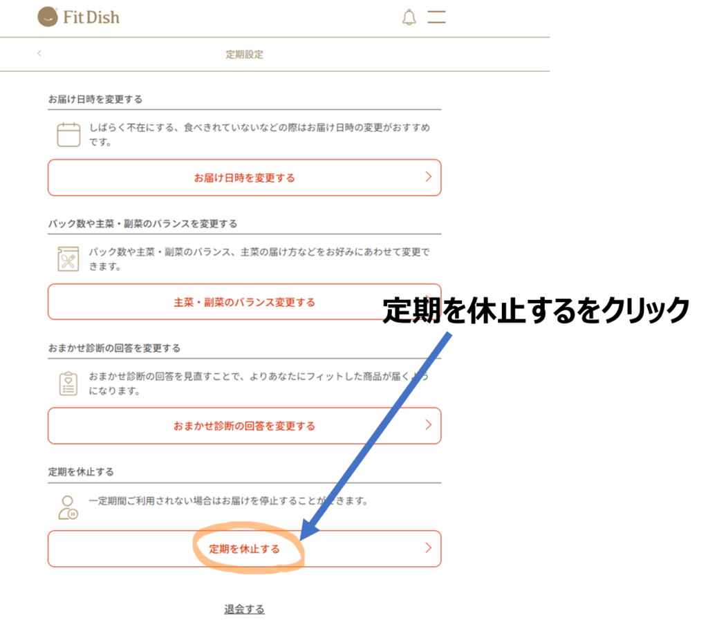 FitDishに登録したけど、味が自分の好みと合わなかった、結婚で生活スタイルが変化したなど、様々な理由でFitDishを解約・休会(一時的に休止)したい方がいるかもしれません。