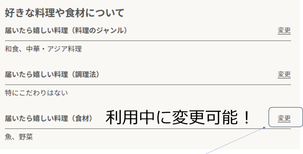 申込後、希望する料理ジャンルを変更することも可能なので、とりあえず好きな料理からスタートすることをおすすめします。