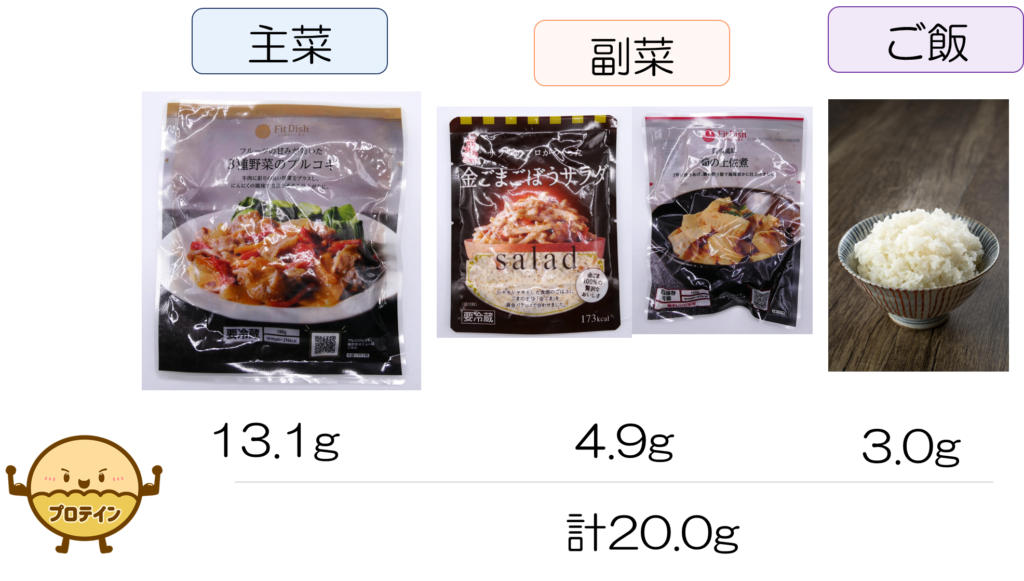 主菜+2副菜+ご飯一膳の食事:平均的なたんぱく質量
