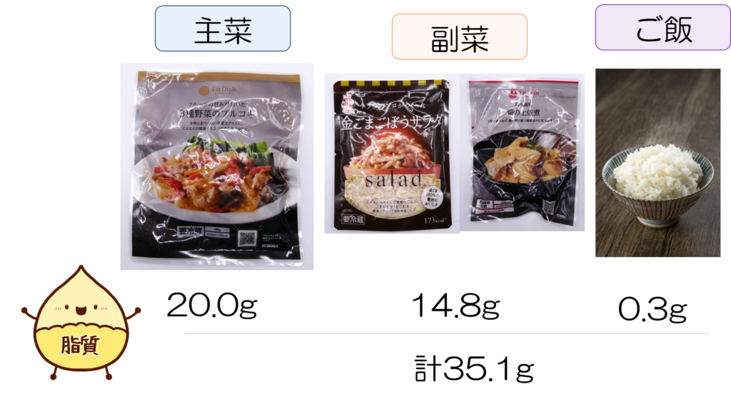 主菜+2副菜+ご飯一膳の食事:平均的な脂質量