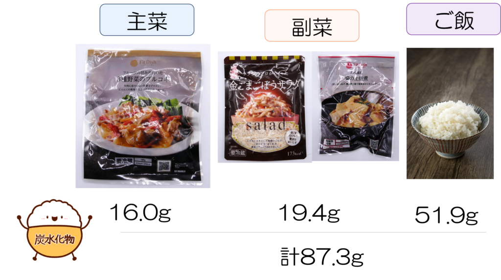 主菜+2副菜+ご飯一膳の食事:平均的な炭水化物量