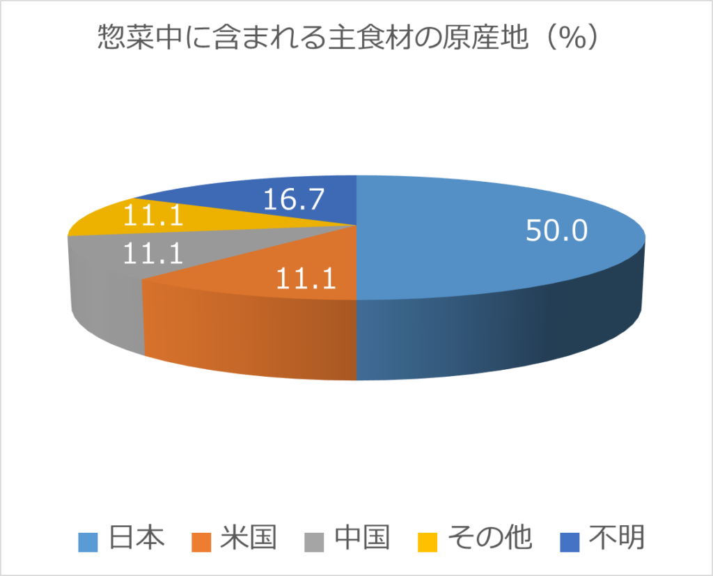 惣菜に使われる主食材(魚・肉・野菜など)の原産地の多くは日本国内でした。