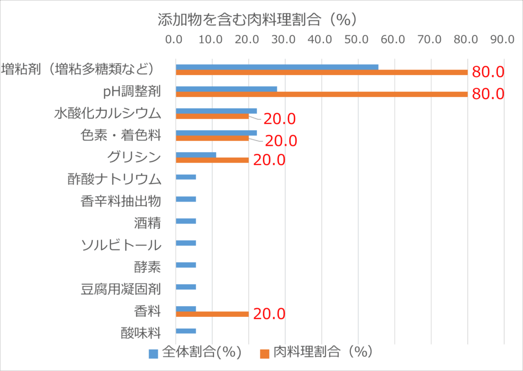 | 添加物 | 添加物を含む肉料理の割合(%) |