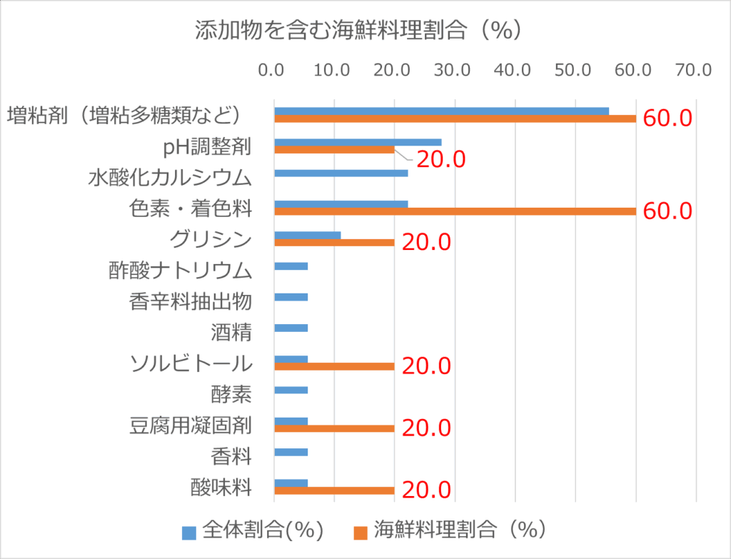 | 添加物 | 添加物を含む海鮮料理の割合(%) |