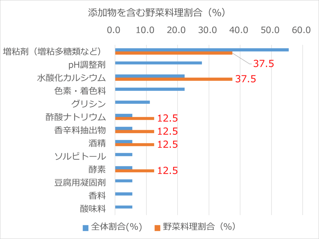 | 添加物 | 添加物を含む野菜料理の割合(%) |